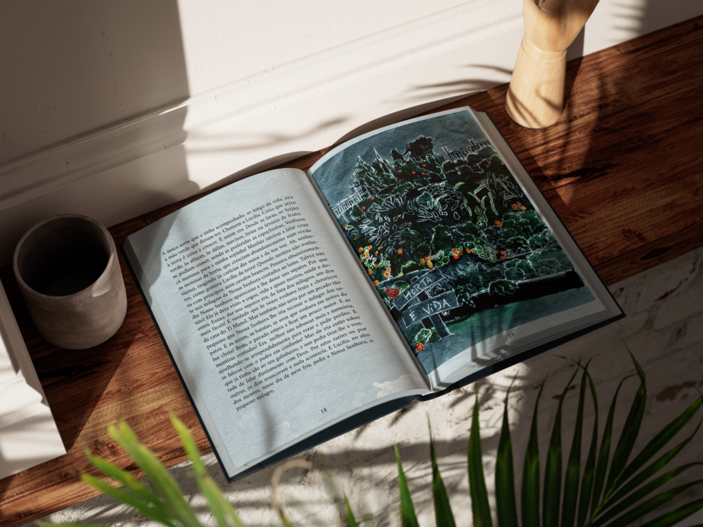 Depois da leitura do livro a sugestão da Ethicco foi a seguinte: uma escala monocromática em tons de azul, inspirada no frio transmontano e na tristeza da vida de Lucília, pontuada de pequenas notas de cor, nas poucas situações em que a alegria dá cor á vida de Lucília.